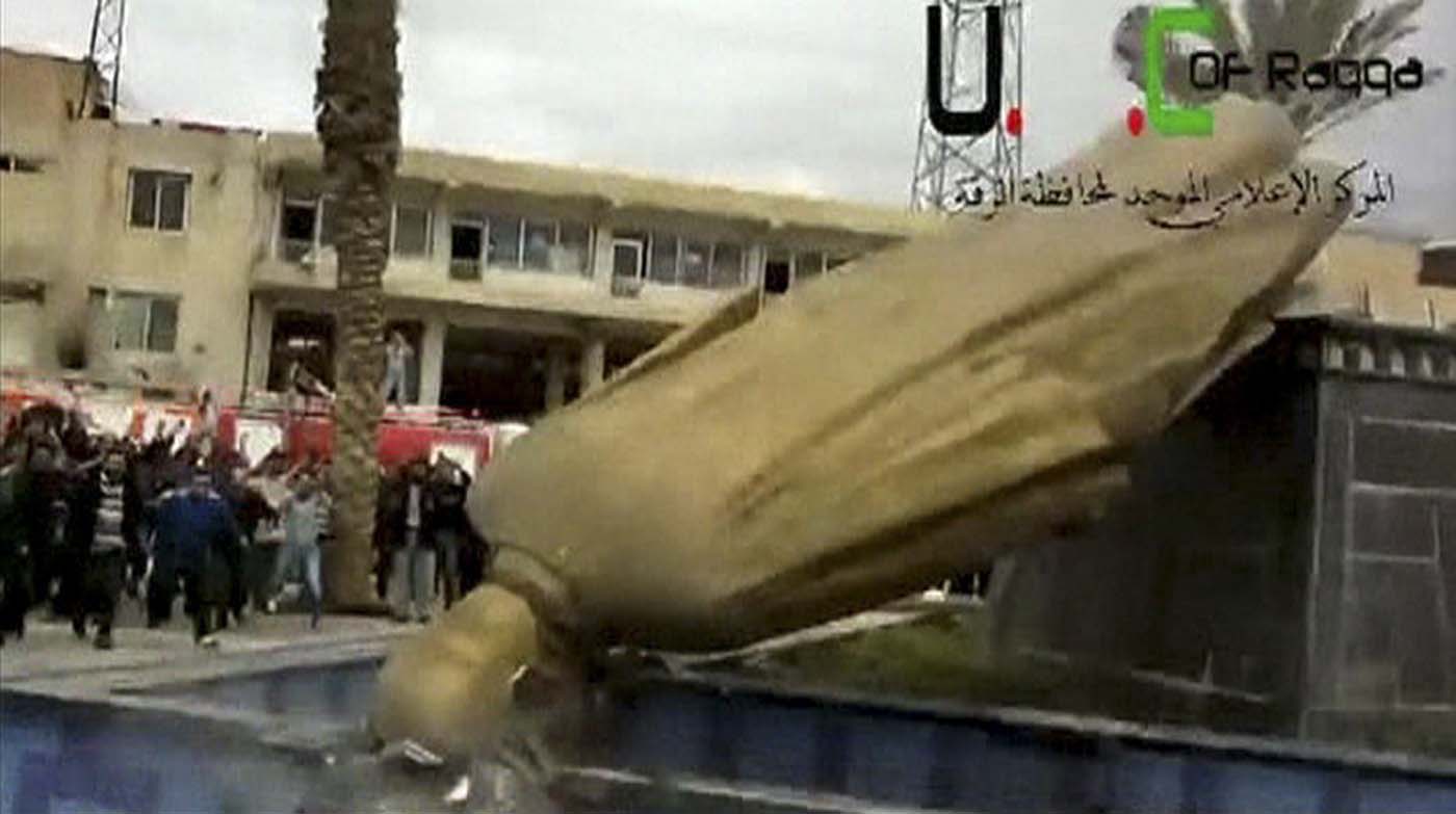 In a scene reminiscent of Raqqa—and indeed the fall of Baghdad—a statue of Hafez al-Assad was destroyed. The insurgents broke open some secret prisons, while finding that in a final act of needless cruelty the regime had murdered other prisoners in the cells before retreating.