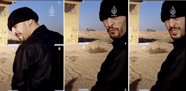 I am simply not confident that this is the same person in the two videos. Another reason for my scepticism is Brahim’s known timeline: the Kassig video was put out on November 16, 2014; Brahim was confirmed as being in Molenbeek, Belgium, in October 2014, and was turned back at the Turkish border in January 2015 as he tried to enter Syria. That said, there is still a window there that means Brahim could have been inside Syria during the time the Kassig video was made. And Brahim’s family have since admitted that Brahim spent a “long time” in Syria before the Paris attacks, where it was initially believed Brahim had never been to Syria.