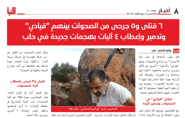 Al-Naba 260, page 8: Ibrahim al-Askari, a “spy” for the Syrian “Awakening” killed by Islamic State north of Al-Bab