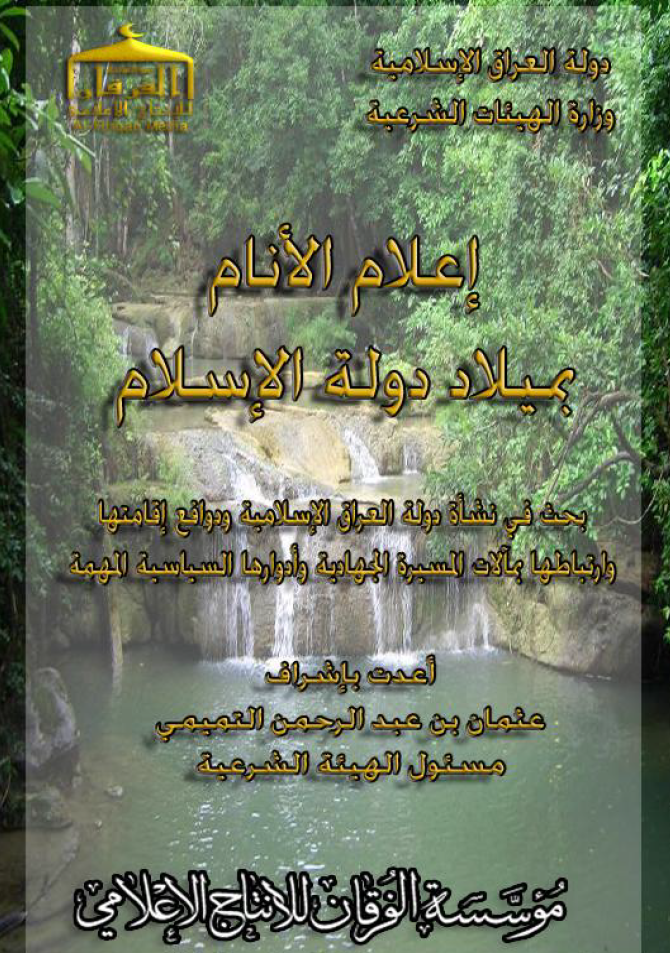 The Islamic State movement published an 87-page book, “Informing Mankind of the Birth of the Islamic State” or “Informing the People of the Birth of the Islamic State” (I’lam al-Anam bi-Milad Dawlat al-Islam), on 7 January 2007. The document was released by Al-Furqan Media Foundation, the central Islamic State propaganda institution, and first appeared on the World News Network website. A rough translation of the book appears below.