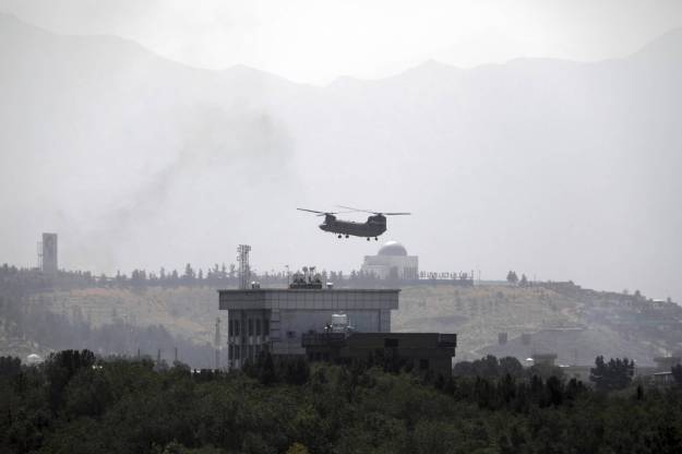 A U.S. helicopter above the American Embassy in Kabul, 15 August 2021 | AP