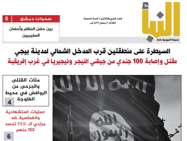 First page of the 34th edition of the Islamic State newsletter, al-Naba