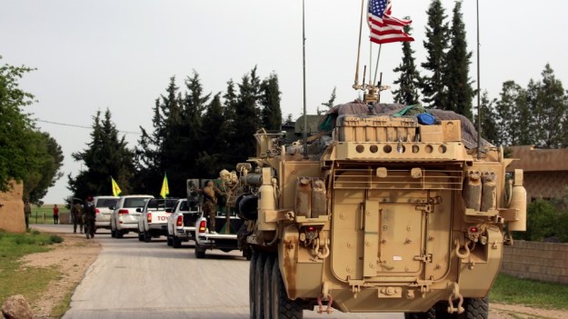 U.S. troops patrolling with the YPG/PKK in the village of Darbasiyah, northern Syria, on the border with Turkey, 28 April 2017