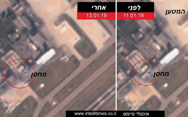 Satellite pictures before and after Israel’s attack on an Iranian weapons cache in Damascus, January 2019 [source]