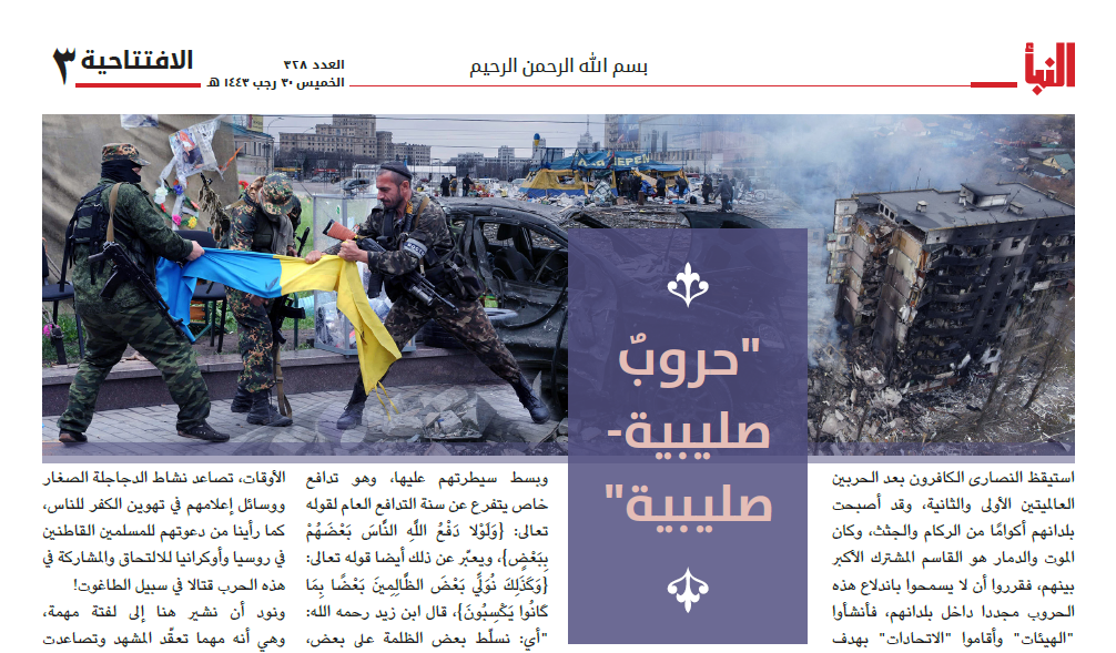 Islamic State Won’t Take Sides With Russia or Ukraine, Hopes For More ‘Crusader-Crusader Wars’ Leave a reply By Kyle Orton (@KyleWOrton) on 22 February 2022 Al-Naba 328, p. 3 Continue reading →