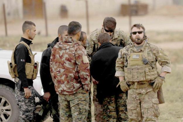 U.S. forces and members of the “Syrian Democratic Forces” (SDF) patrol Al-Darbasiya in northeastern Syria, 4 November 2018. (AFP)
