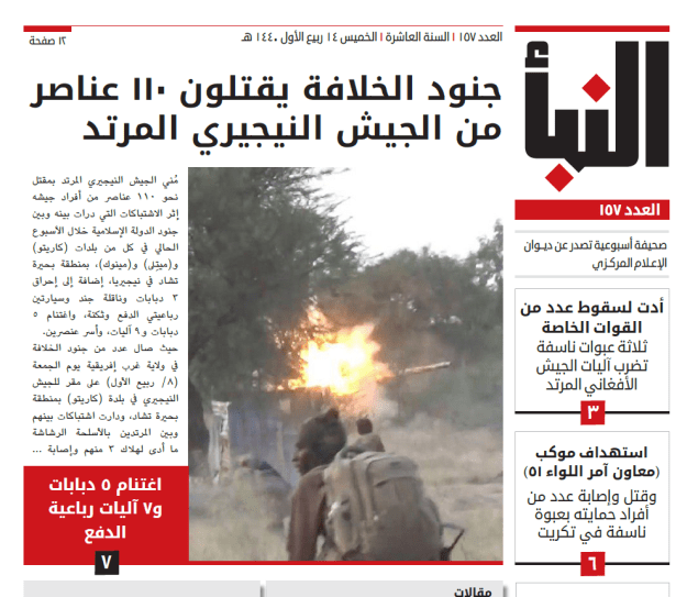 The Islamic State (IS) released the 157th edition of its newsletter, Al-Naba, on 22 November. The content was fairly standard, underlining IS’s ideology, particularly its belief that the current hardships are merely bumps on the road to a victory that has been pre-ordained by God. The bulk of the newsletter is devoted to the fierce insurgent campaign IS is waging in northern Iraq and parts of eastern Syria. Continue reading