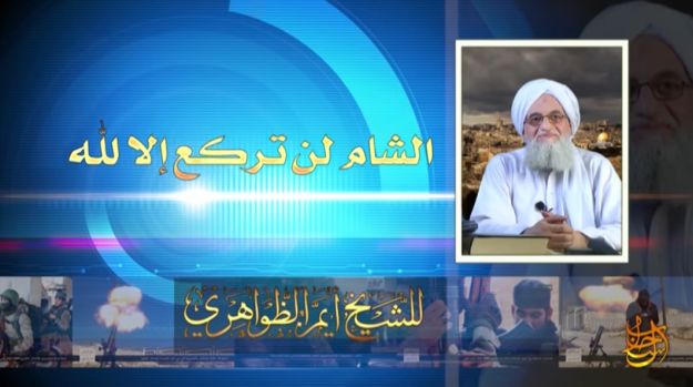 Al-Qaeda’s leader, Ayman al-Zawahiri, released a speech today entitled, “Sham Will Submit to None Except Allah” or “Syria Will Submit to None Except Allah”. The short speech—around five minutes in length—was part of the “Brief Messages” series, “Brief Messages to a Victorious Nation 6,” to be exact. An English transcript of al-Zawahiri’s speech was released by As-Sabha Media and is reproduced below with some editions in transliteration, explanatory notes added, and interesting sections highlighted in bold.