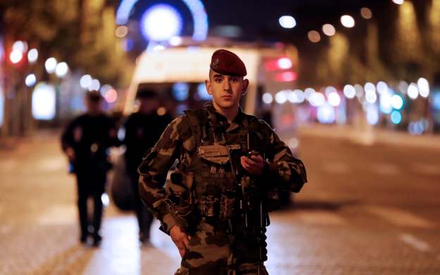 Security forces stand guard after attack in Paris, 20 April 2017 (CREDIT: ETIENNE LAURENT/EPA)
