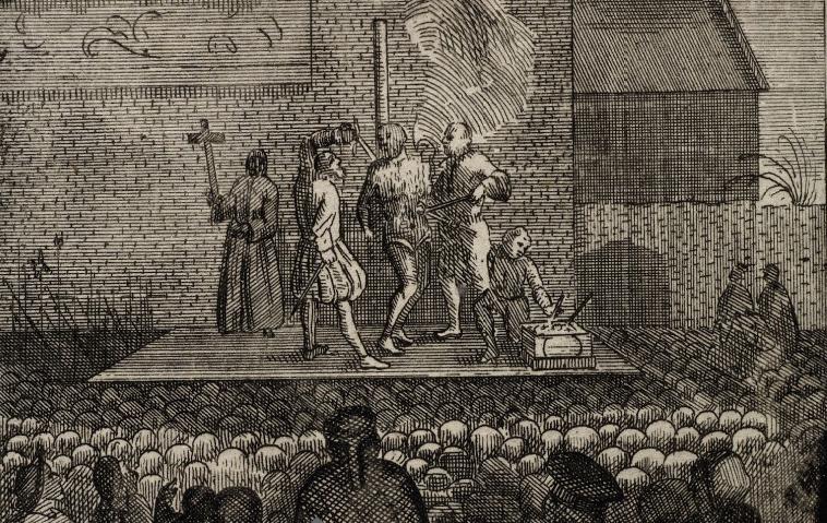Execution of Jan Beuckelszoon // Illustration in a book by Lambertus Hortensius