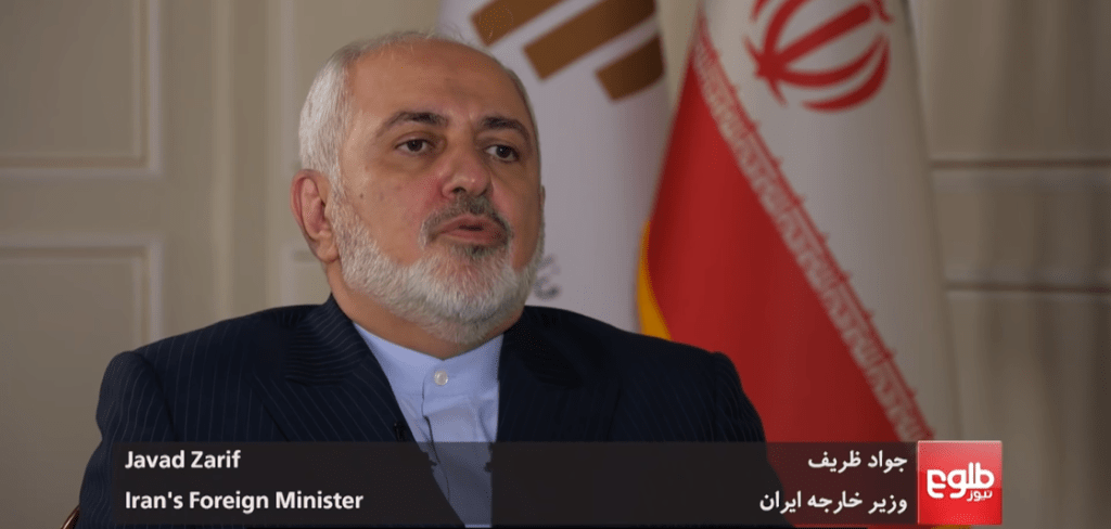 Iranian Foreign Minister Muhammad Javad Zarif, December 2020, during an interview with Lotfullah Najafizada of TOLO News