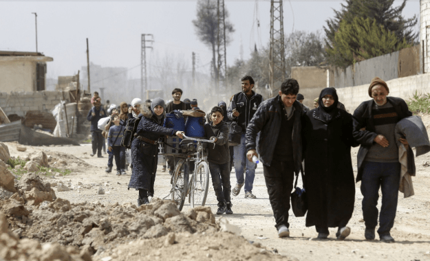 Syrians being deported from East Ghuta after the regime conquest, 15 March 2018 // Credit Louai Beshara, Agence France-Presse